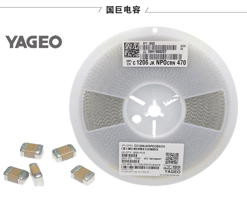 国巨贴片电容的编带粘胶统一为黄色,这是其显著特征之一。若编带为其他颜色(如白色、透明),需警惕仿制品。